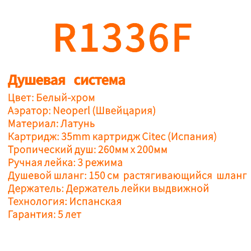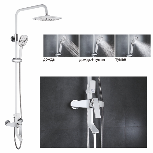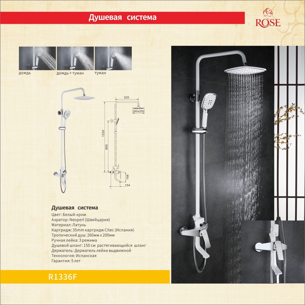 1336F Душевой комплект со смесителем белый  ROSE (Испания)