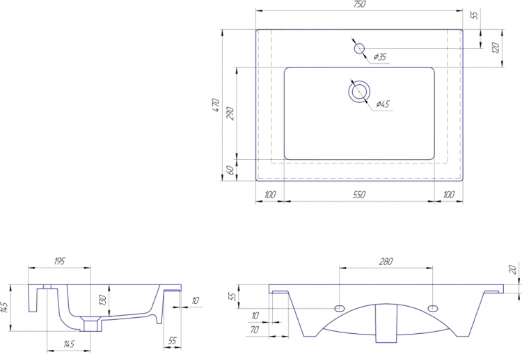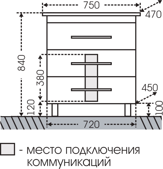 ВЕГАС 75  3 ящ тумба с раковиной  САНТА (Россия)