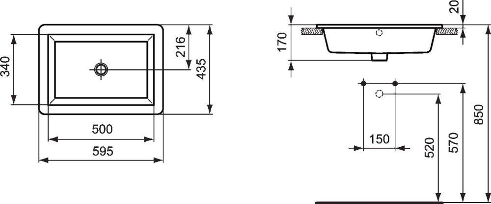 ШТРАДА 60х43  Раковина встраиваемая сверху Ideal Standard