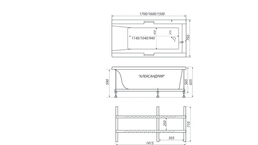 Ванна акрил Александрия 160*75 с ручками TRITON( Россия)