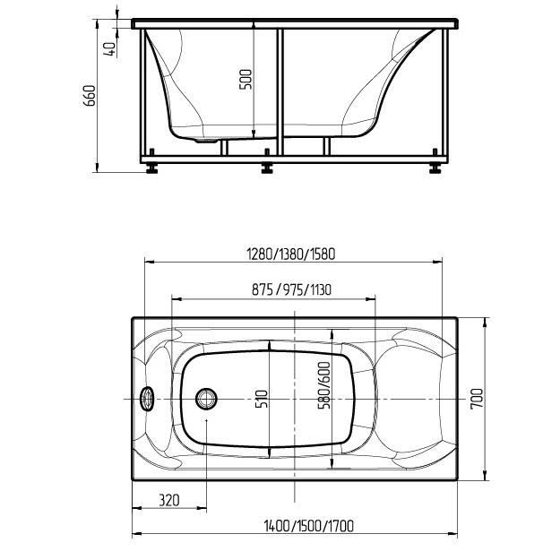 Ванна акрил Альфа 140х70 с экраном Aquatek (Россия)
