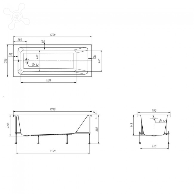 Ванна акрил ЛЕОН 170*70, каркас ROCA (Испания)