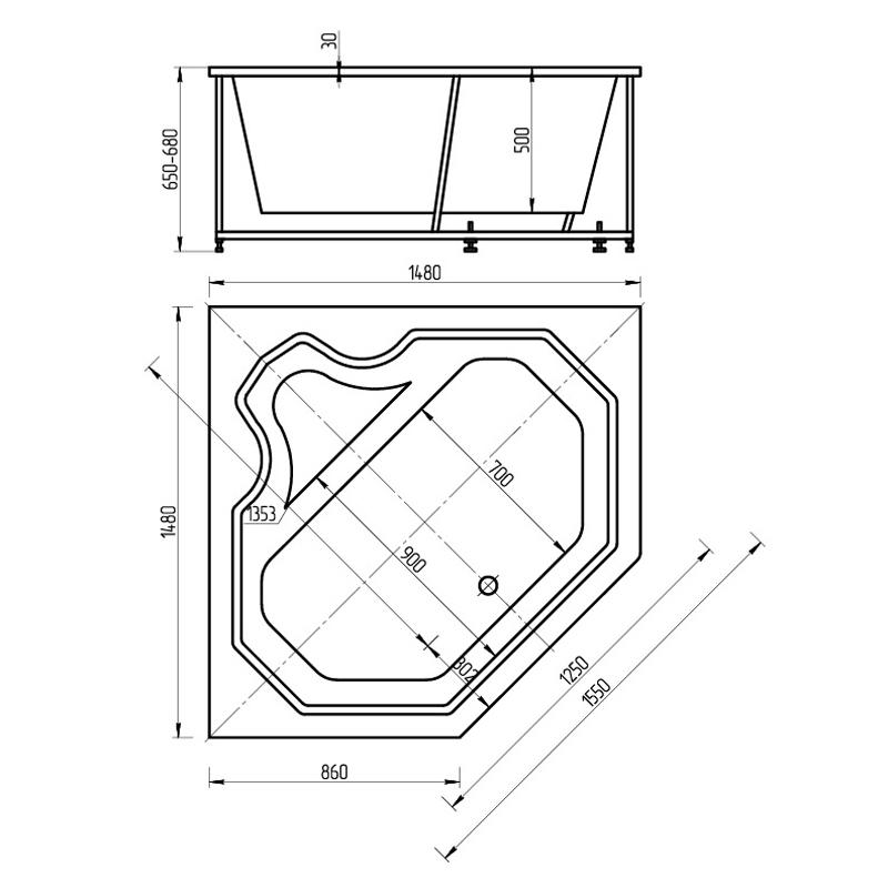 Ванна акрил Лира 148х148 с экраном, Aquatek (Россия)
