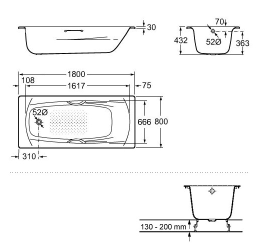 Ванна сталь СВИНГ 180х80 с ручками, ножками ROCA (Испания)